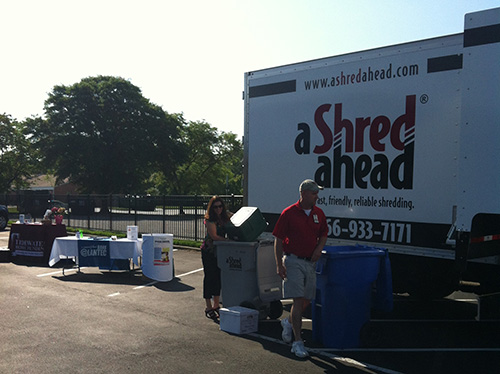 Pictured: Janet Moore, Sr VP Business Development gets the day started with the first box of documents to be shredded.