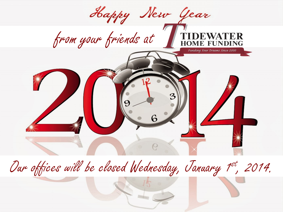 Tidewater Home Funding offices will be closed New Year's Day (Wednesday, January 1, 2014).