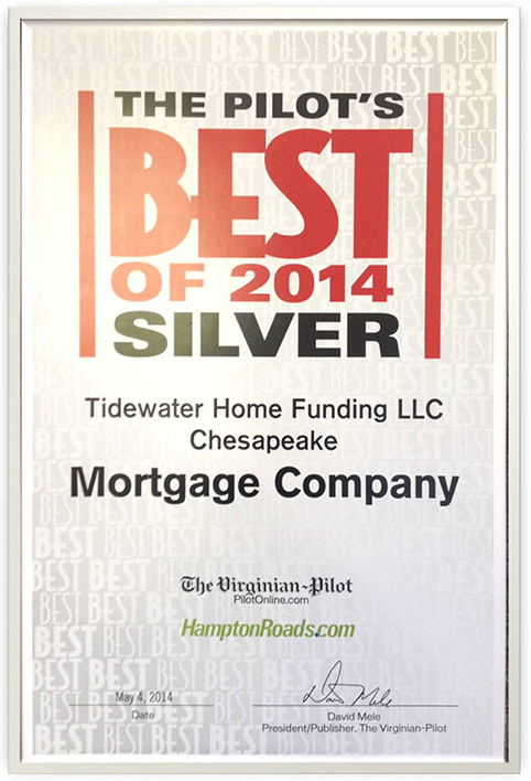 Tidewater Home Funding is voted The Pilot's Best of 2014 Silver, Chesapeake Mortgage Company. In a vote by the readers of The Virginian-Pilot, Pilotonline.com and HamptonRoads.com, the exceptional team of professionals at Tidewater Home Funding were voted as one of Hampton Roads' best mortgage companies. Tidewater Home Funding has received several Best of awards since first participating in 2009. Thank you to everyone who took the time to register your vote and support for our company. We are greatful for the opportunity to work with such wonderful real estate customers, realtors and builder partners.