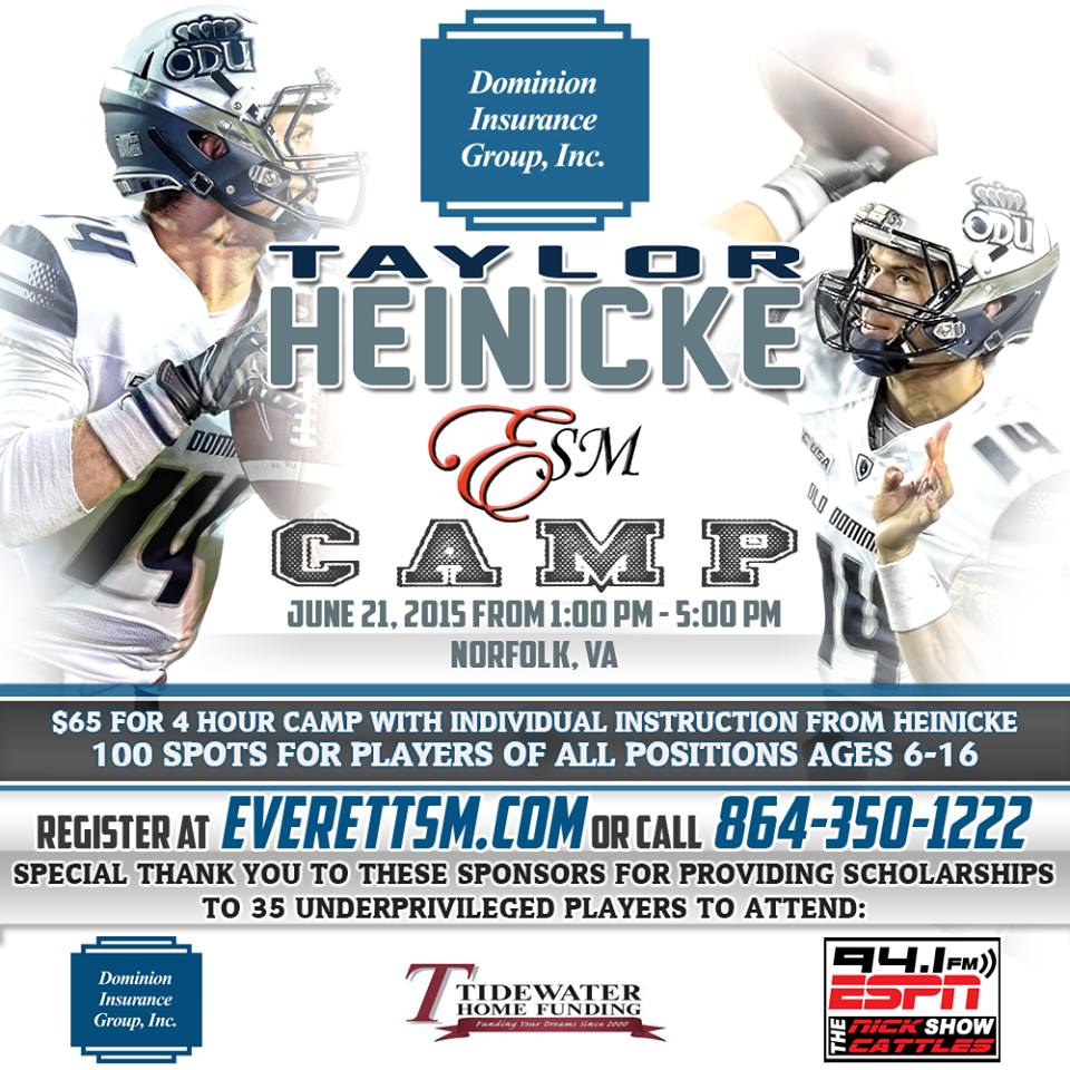 Tidewater Home Funding is proud to sponsor Taylor Heinicke's upcoming youth football camp. Don't miss out. Sign up your players today!